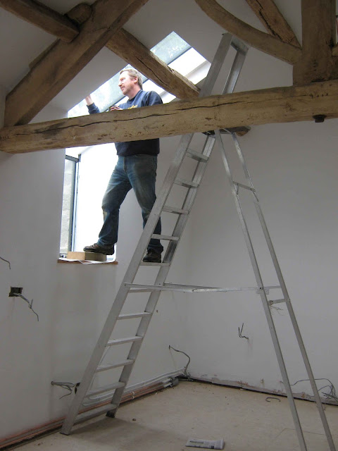 In the last few weeks of sunshiney weather we've had plenty of interest from passing walkers who've been really impressed with the appearance of the renovated barn, they love the colour of the paintwork, the pointing, and if they get a chance to be shown around, have been very complimentary of the build quality, including the lovely plaster finish which is now being painted.